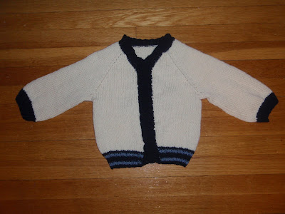 Made it through our first week home. I just finished Sophia's sweater, complete with bling. I have a feeling, however, she will not like it as much as Dylan likes to wear the one I made him. I am fairly pleased with it though. I think adding a few more rows onto the hood would make it more wearable and I am not really happy with the zipper insertion (not very neatly done. I think a combo of not doing it before and my impatience to get the sweater done are behind that). I also think there is a little too much bling. I may take off the flower buttons I added to the neck area.